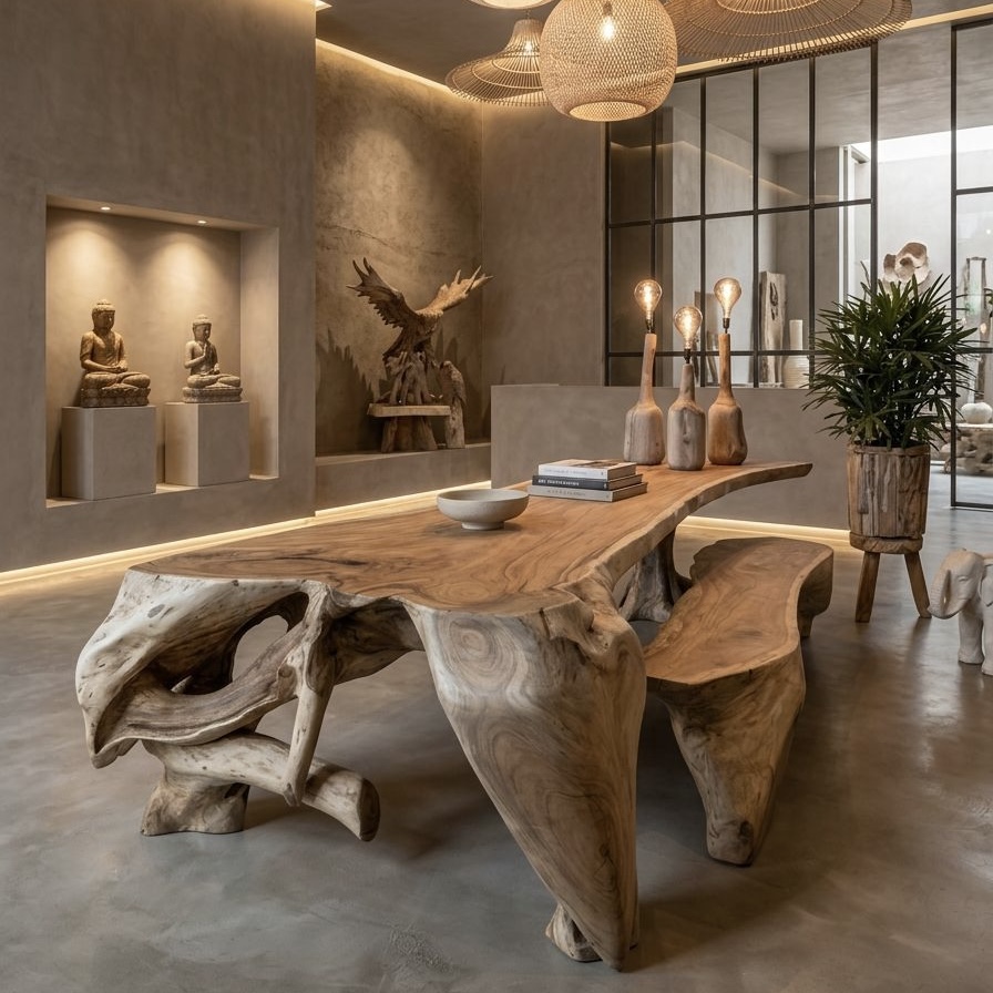 Massief Suar houten eettafels – boomstamtafels op maat