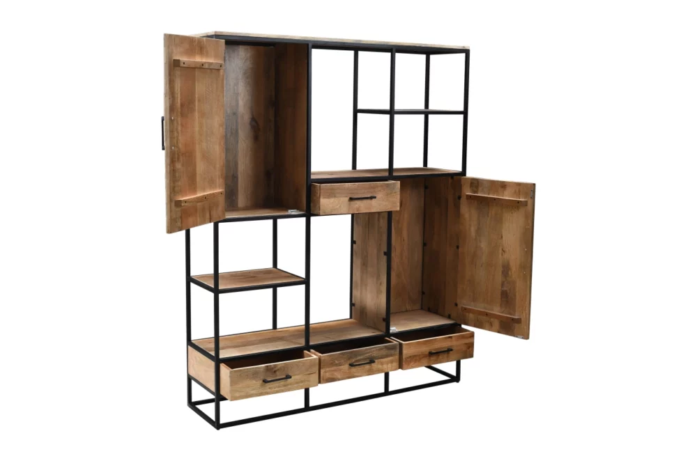 - Met een sterke, zwarte metalen frame straalt deze kast een industriële charme uit, perfect voor moderne woonstijlen.