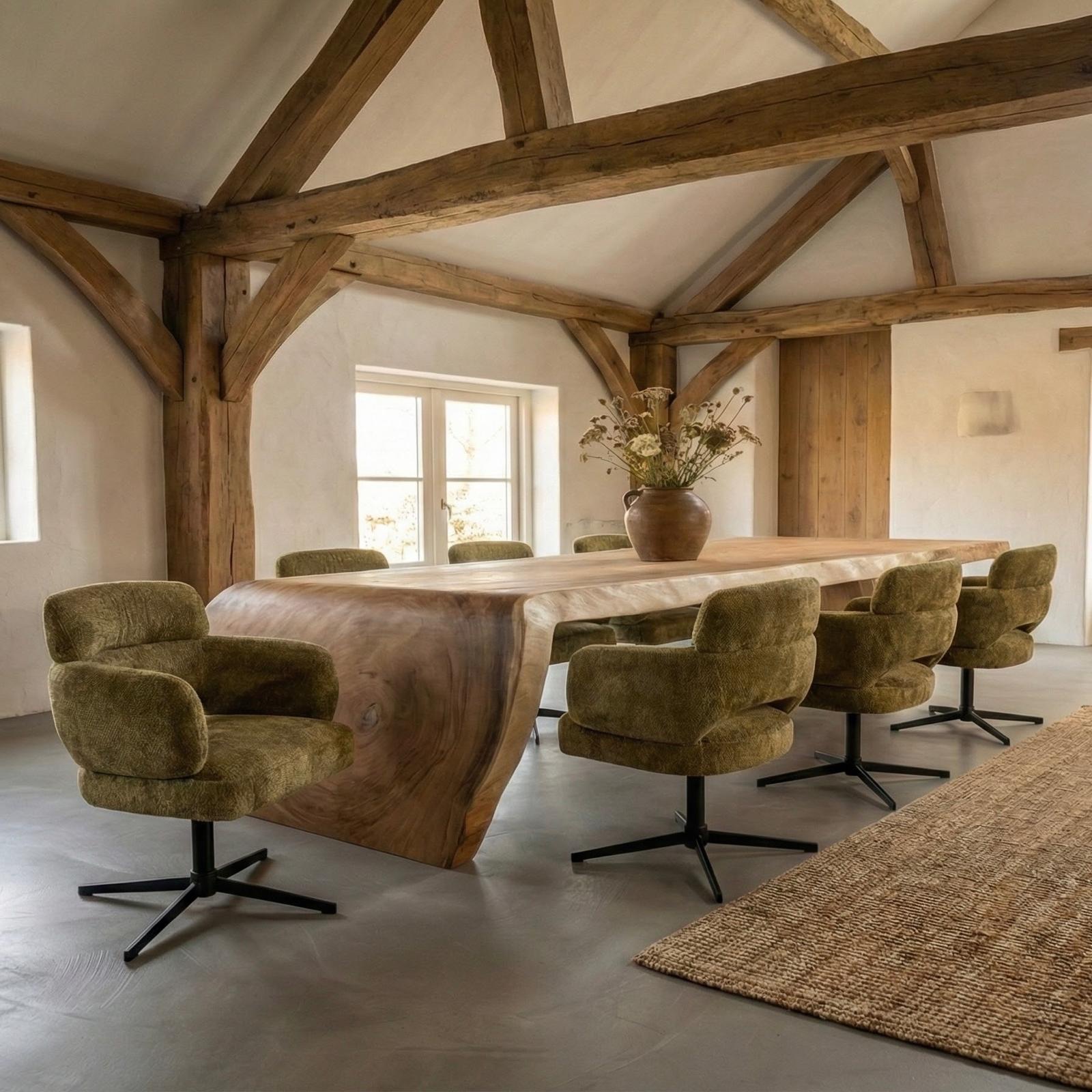 voor eetkamerstoelen of fauteuils ben je hier aan het juiste adres. Alle stoelen kunnen naar eigen wens worden samengesteld. Denk aan het veranderen van stoelpoten of het toevoegen van wieltjes! Ook is er een grote keuze uit een ruime collectie van leder en stoffen. Voor de poten kan je kiezen tussen moderne zwarte poten of RVS-poten als je dat liever hebt. Voor de echte klassiekers zijn er zelfs stoelen met houten poten.