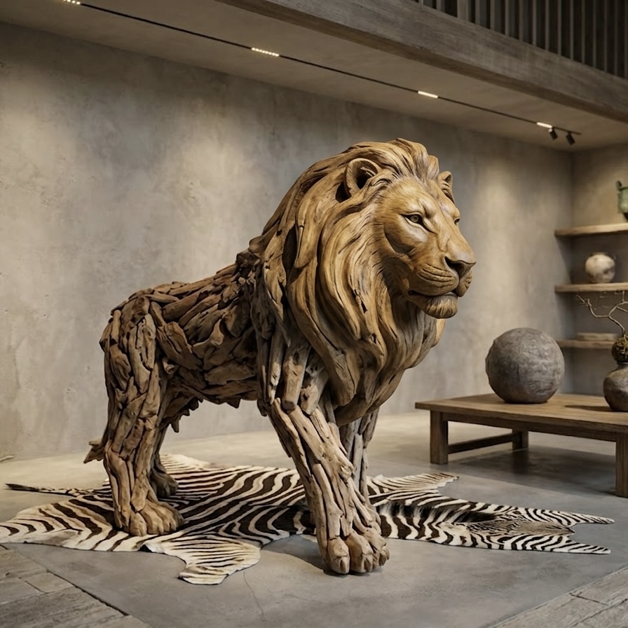 Het meest opvallende segment van Sventerior: levensgrote dieren en sculpturen, met de hand gesneden uit massief teakhout. Van een compacte adelaar op je dressoir tot een leeuw van 3,7 meter bij de ingang van je bedrijf: