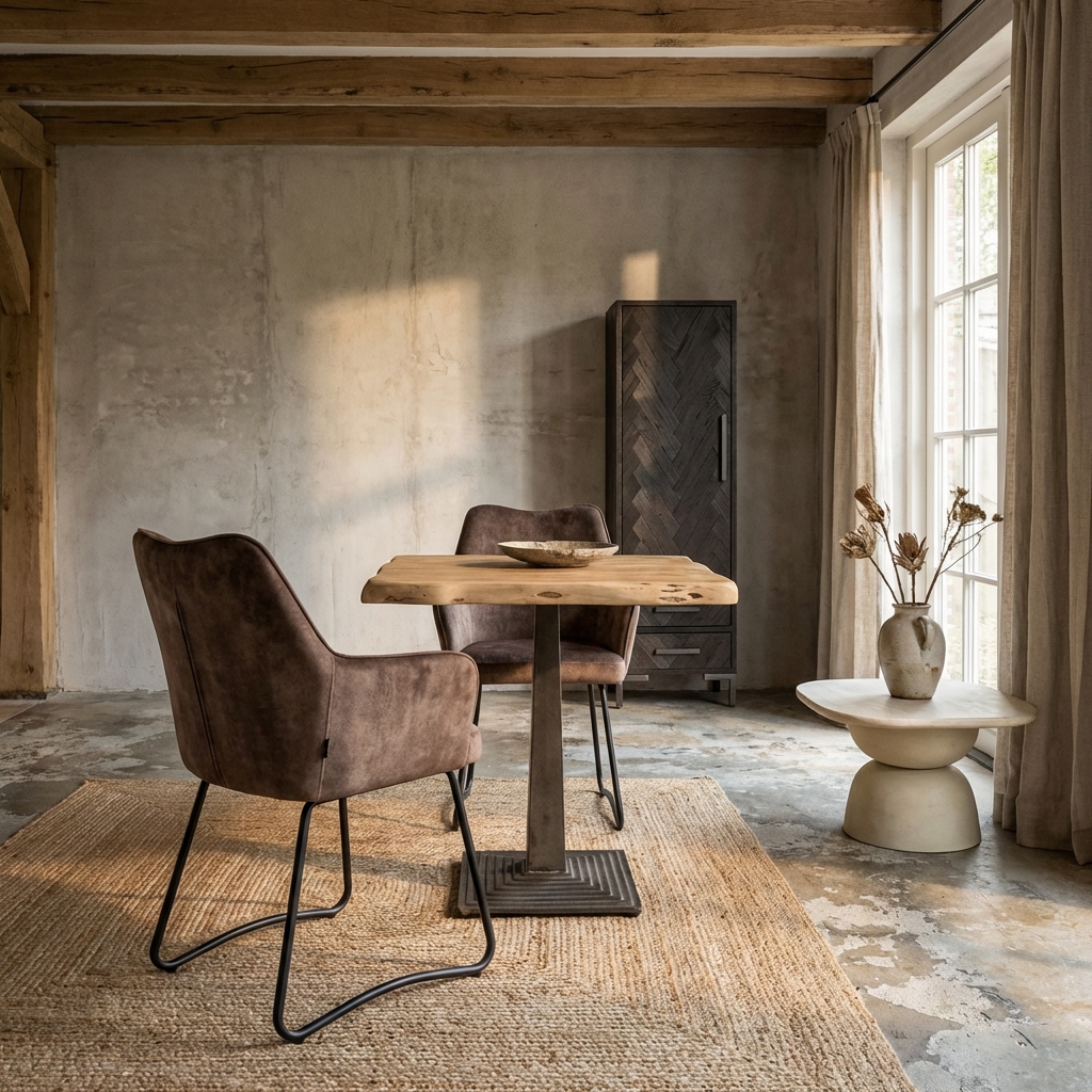 Op zoek naar comfortabele en stijlvolle eetkamerstoelen met armleuning? Bij Mokana Meubelen in Enschede vind je een uitgebreide collectie eetkamerstoelen die niet alleen comfort bieden, maar ook perfect passen in jouw interieur. Van moderne tot landelijke en industriële stijlen, onze eetkamerstoelen met armleuning zijn verkrijgbaar in diverse materialen, zoals stof, leer en velvet.