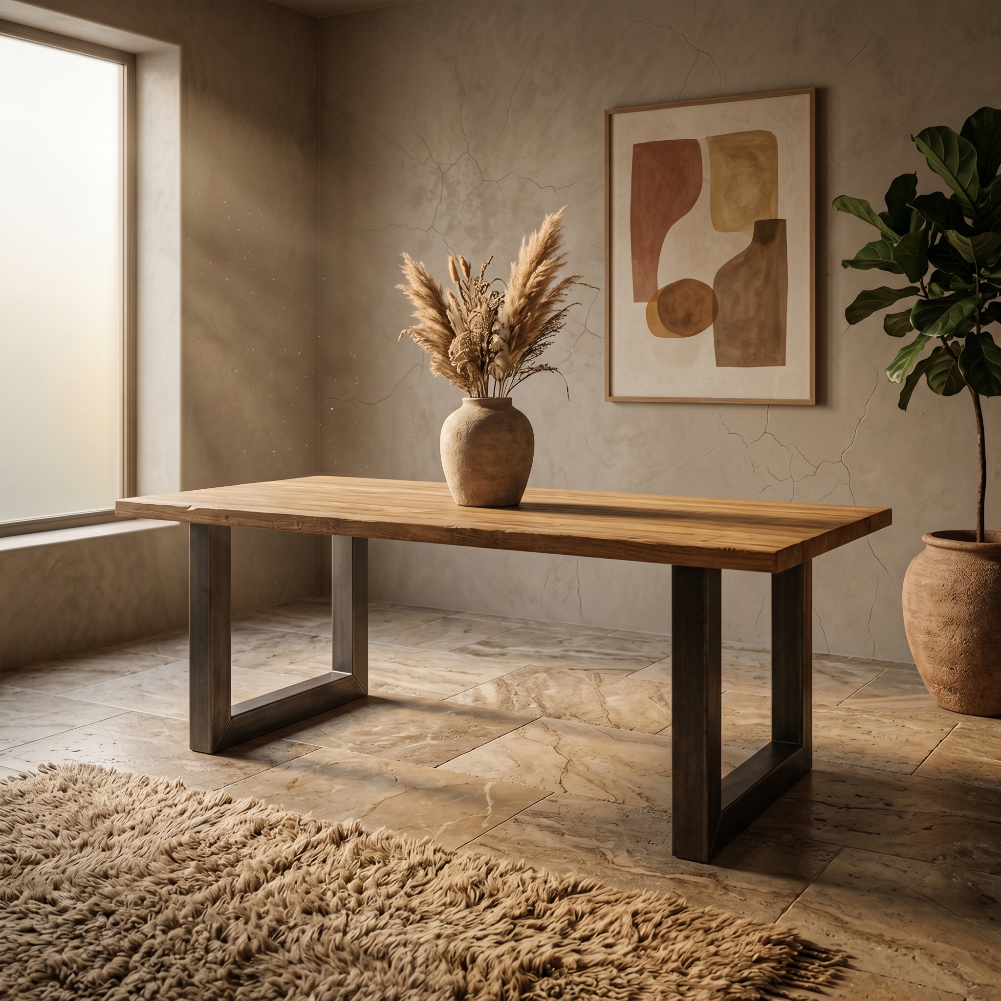 Is jouw woonstijl stoer en robuust? Dan mag een robuuste tafel natuurlijk niet ontbreken. Je kunt deze woonstijl doorvoeren in de rest van je woning. Maak jouw woning compleet met een robuuste salontafel of een robuuste eettafel. Qua kleurgebruik worden er veel grijs- en bruintinten gebruikt. Fellere kleuren komen vaak terug in accessoires zoals kleden en sierkussens. In ruwe materialen komt juiste dat robuuste gevoel terug. Voorbeelden zijn de tafelbladen van onze tafels. Onbewerkt hout, staal en canvas komen veel terug in deze woonstijl.