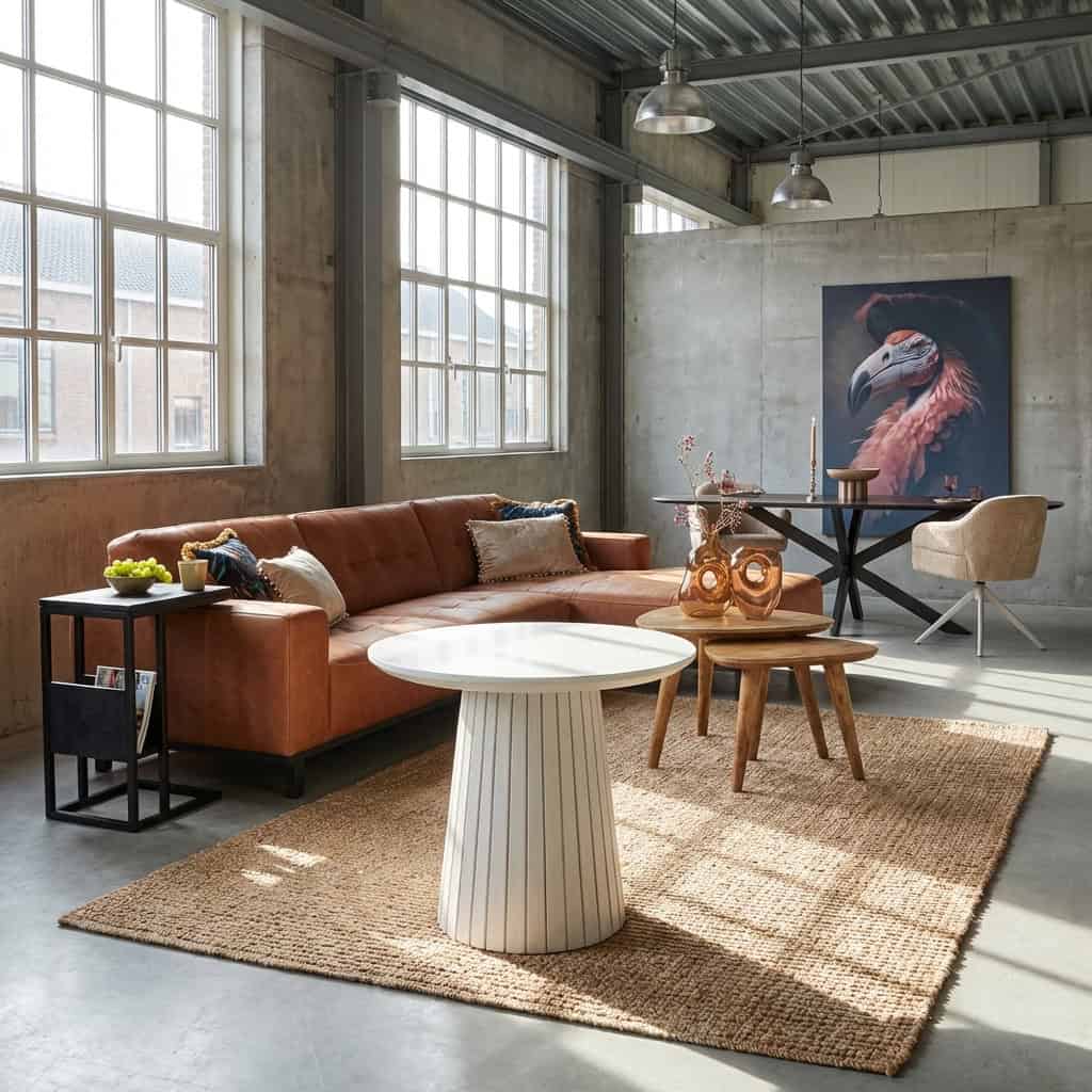 Bij een hoekbank of U-bank werkt een ronde of ovale salontafel het best. De ronde vorm zorgt ervoor dat de ruimte open blijft en er geen harde hoeken tegenover de zachte bank staan. Kies een tafel die niet breder is dan de kortste zijde van je hoekbank, zodat er voldoende loopruimte rondom blijft. Voor een ruime woonkamer kun je ook kiezen voor een salontafelset van twee of drie tafels, die je flexibel kunt indelen.