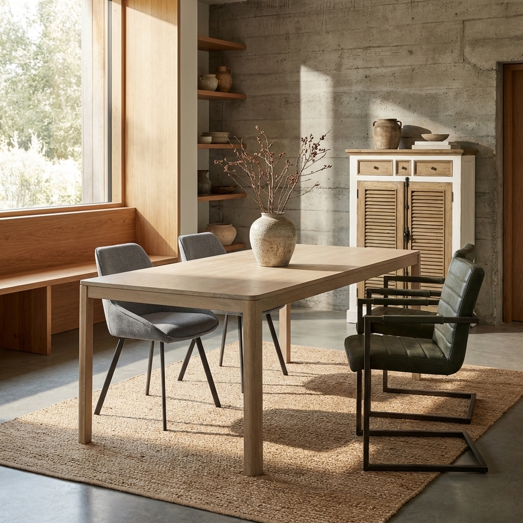 • Scandinavisch interieur — de White Wash variant sluit perfect aan bij de Scandinavische principes van licht, lucht en eenvoud. Combineer met een witte of lichtgrijze muur, een vloerkleed in naturel wol en planten voor een typisch Scandinavische sfeer.
