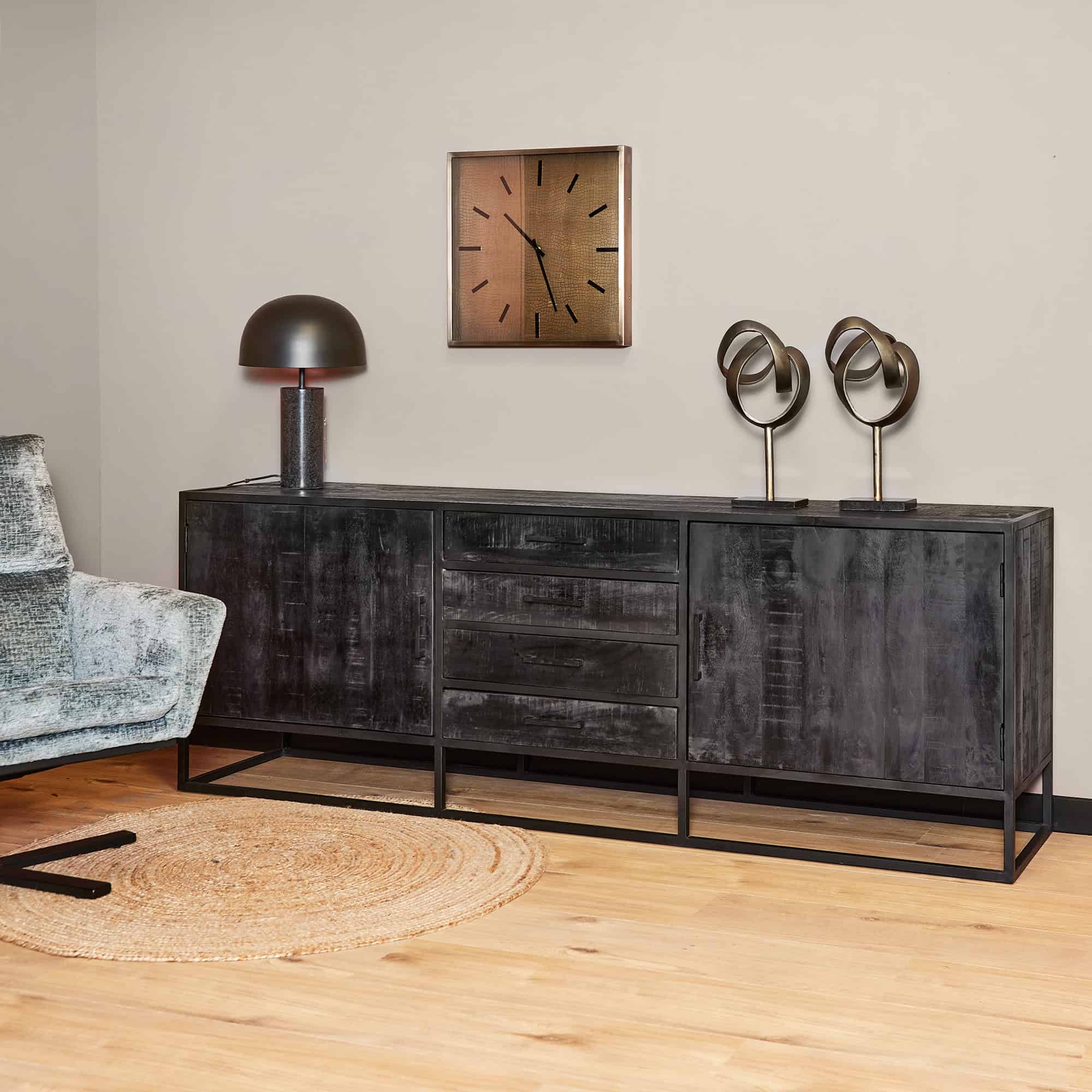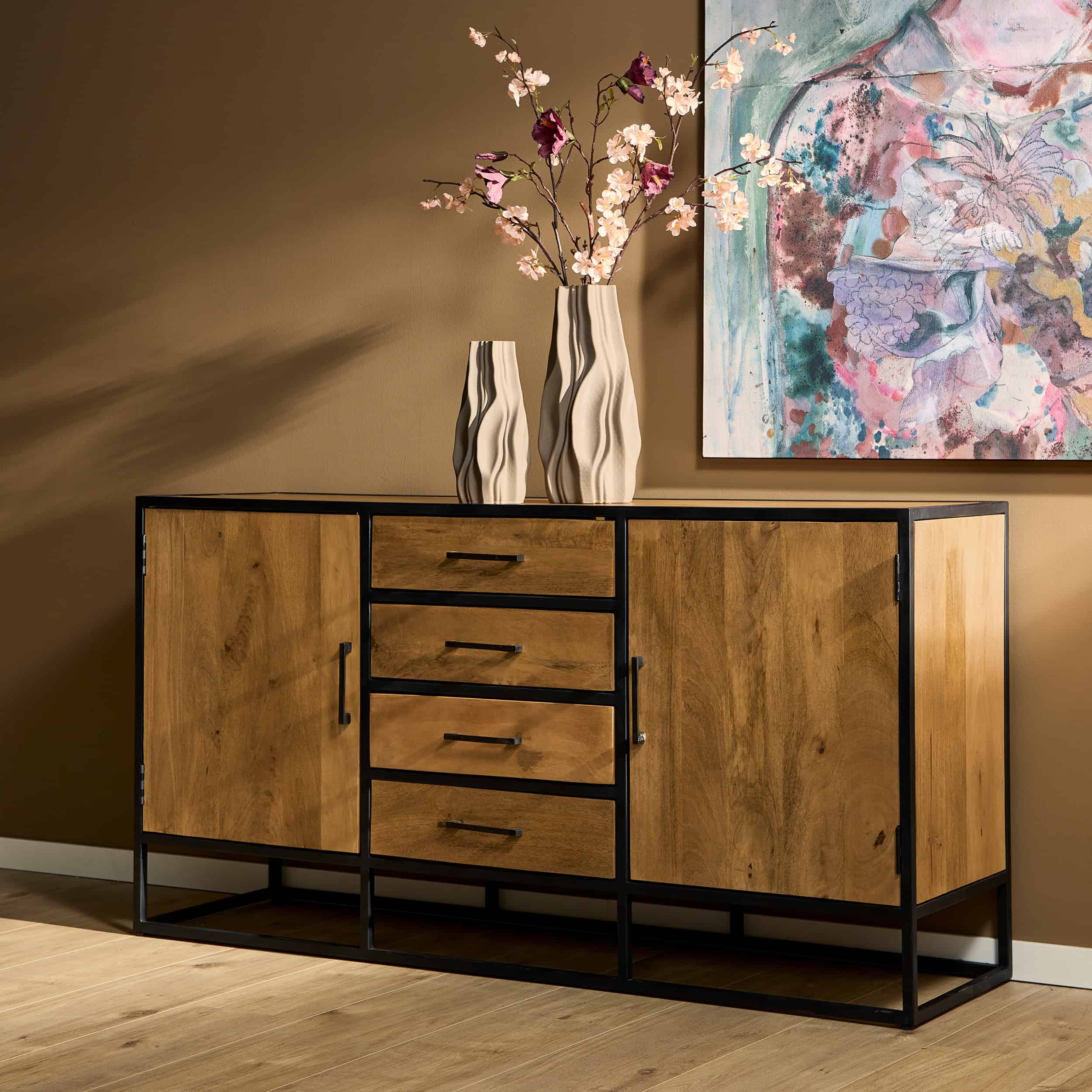 Het Denver dressoir biedt volop ruimte voor alles wat je uit het zicht wilt hebben. De lades en kastdeuren zorgen voor een overzichtelijke opbergplek, terwijl het natuurlijke hout en het stalen frame zorgen voor een stoere uitstraling. Het Denver dressoir is zowel in zwart als naturel verkrijgbaar en in meerdere afmetingen.