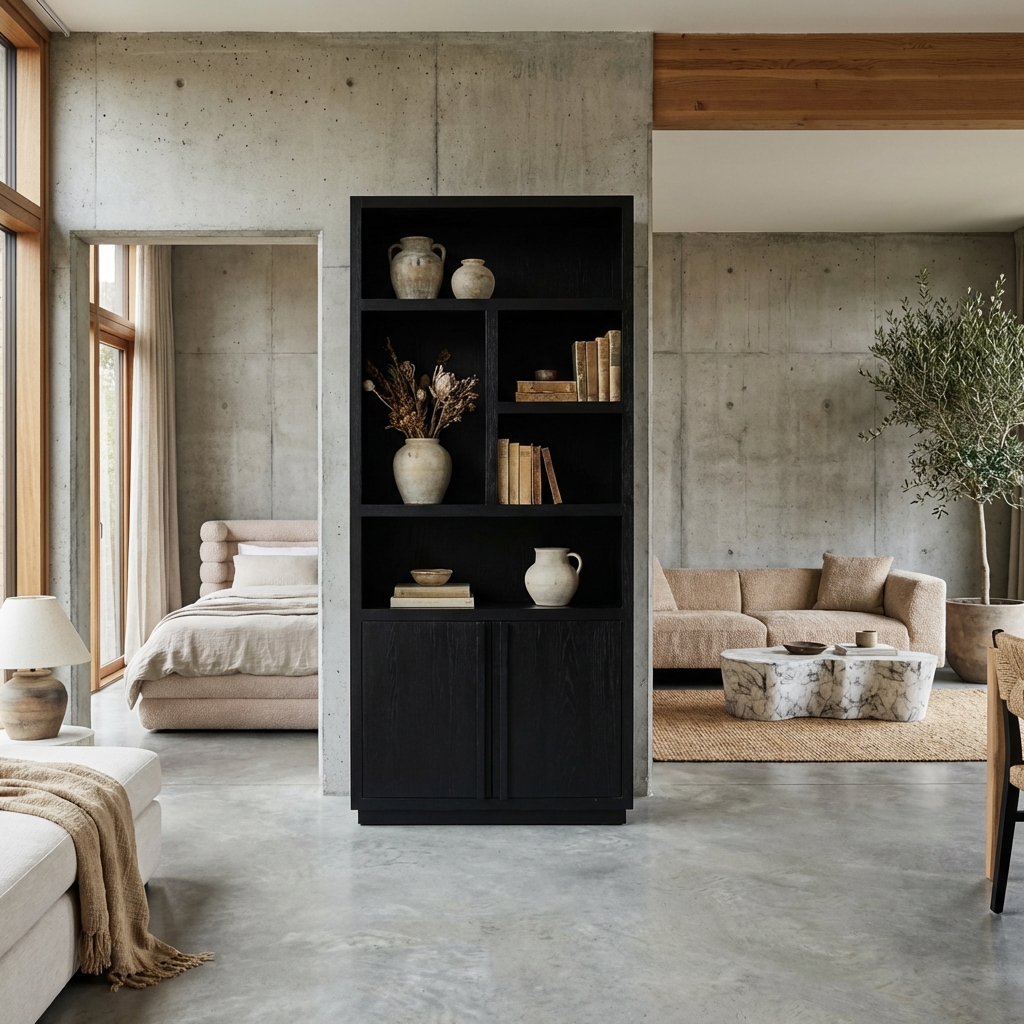 De Oakura woonserie van Richmond Interiors combineert subtiele kleuren met strakke lijnen. Het eikenfineer in zwart en soft grey geeft een rustige  sfeer, geïnspireerd op de minimalistische uitstraling van Japanse meubels