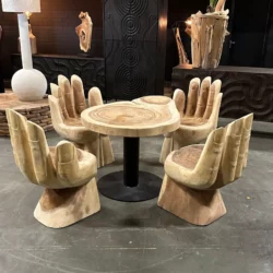 Fauteuil ‘Hands On’ is een unieke stoel, vervaardigd uit massief suarhout, met een prachtig design dat de natuurlijke kleurtinten van het hout optimaal benut. De uitgesneden details geven de vorm van een hand een super realistische uitstraling. Deze handgemaakte fauteuil is een echte eye-catcher voor een kantoor of lobby, maar ook geschikt voor buitengebruik. Voeg kussens toe voor een extra comfortabele zit, zelfs bij langdurig gebruik.