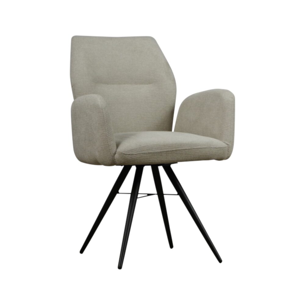 Geef jouw eetkamer een eigentijdse uitstraling met eetkamerstoel Juul met arm, een perfecte mix van comfort, functionaliteit en stoer design. Deze stijlvolle eetkamerstoel is ontworpen voor wie houdt van modern wonen met een robuuste twist. Dankzij de combinatie van elegante armleuningen, een stevig zwart metalen onderstel en hoogwaardige stoffering, vormt Juul een comfortabele én visuele eyecatcher aan elke eettafel.