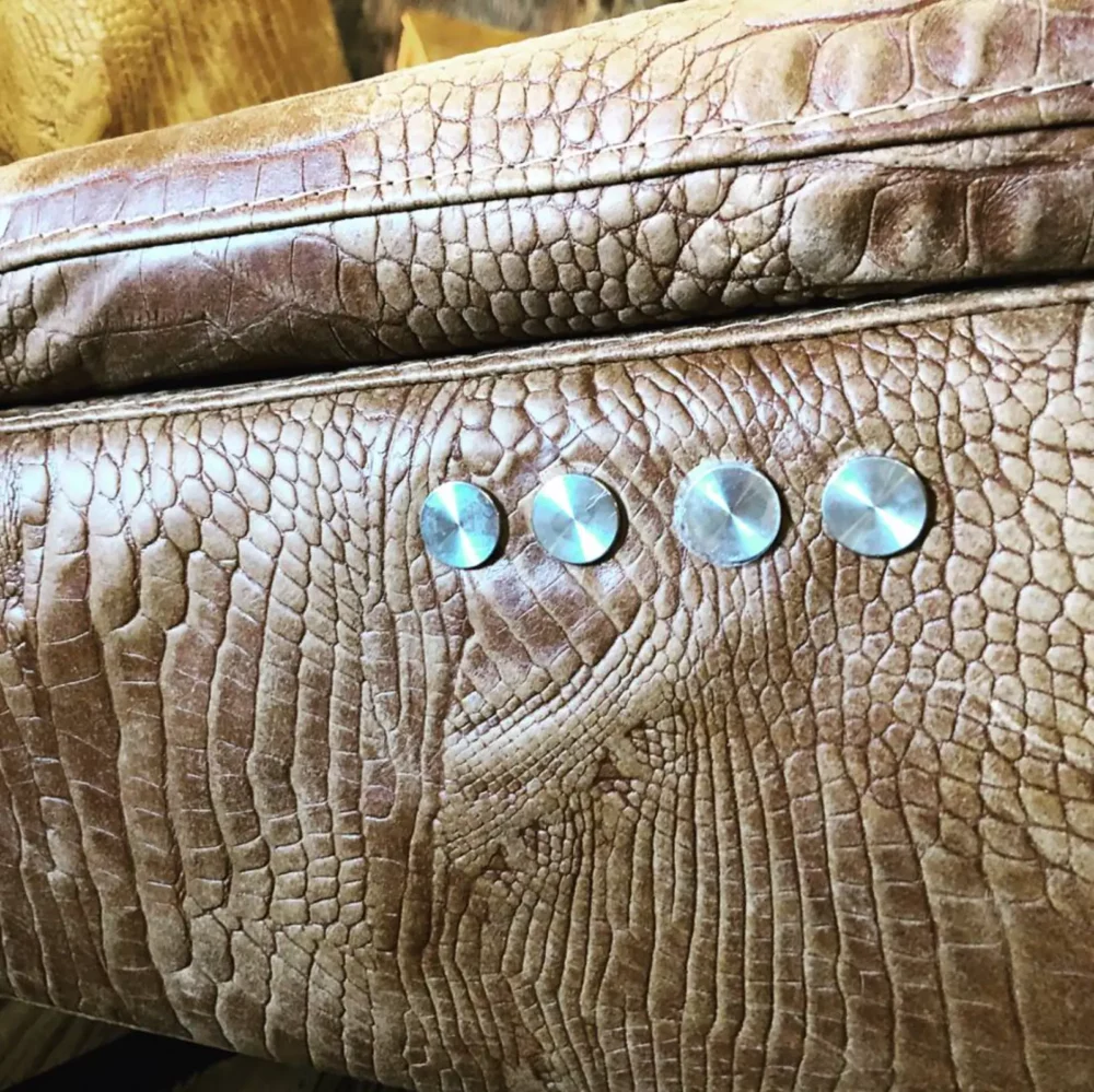 Leverbaar in prachtige kleuren leder Sudan met ingebrande crocoprint.
