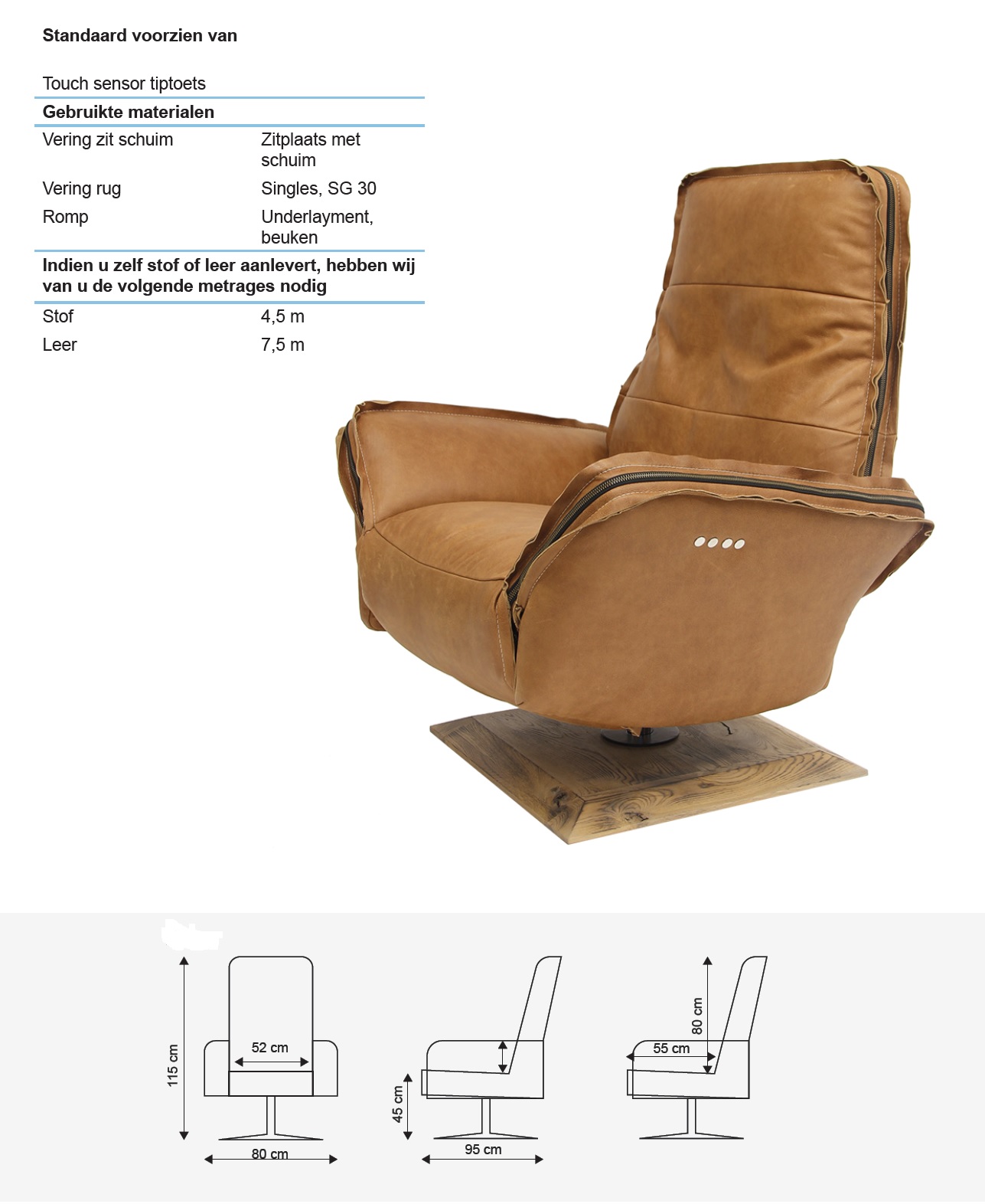 Of je nu een hoekje in je woonkamer wilt opfleuren of een comfortabele leesplek zoekt, de Maranello relaxfauteuil past perfect. Zijn moderne ontwerp met een verfijnde houten basis maakt hem een stijlvolle toevoeging aan je interieur. Laat deze stoel jouw favoriete plek worden om even te ontsnappen aan de drukte van de dag.