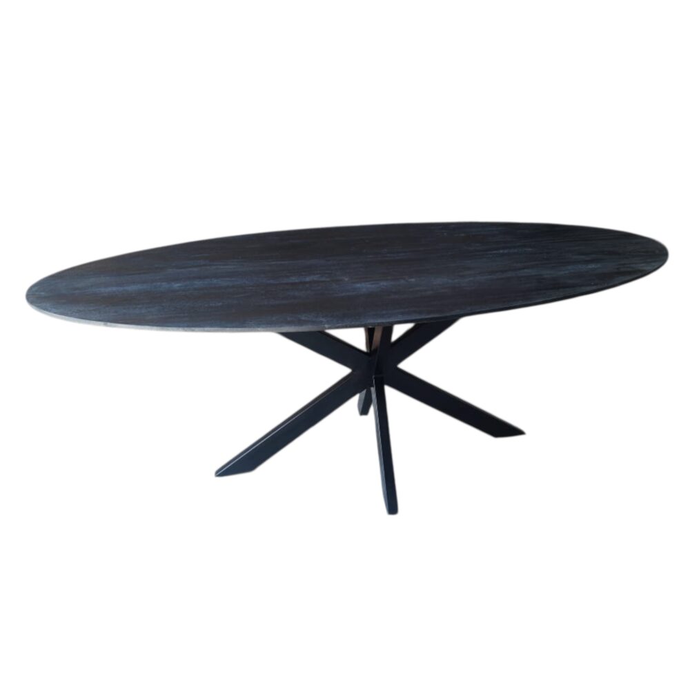Ovale eettafel mangohout zwart – stijlvol, massief en direct leverbaar