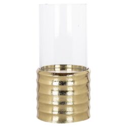 Elegant Bodil windlicht van hoogwaardig goudkleurig aluminium, perfect om een gezellige sfeer te creëren in uw woonruimte. Beschikbaar in twee maten en geschikt voor zowel moderne als klassieke interieurs.