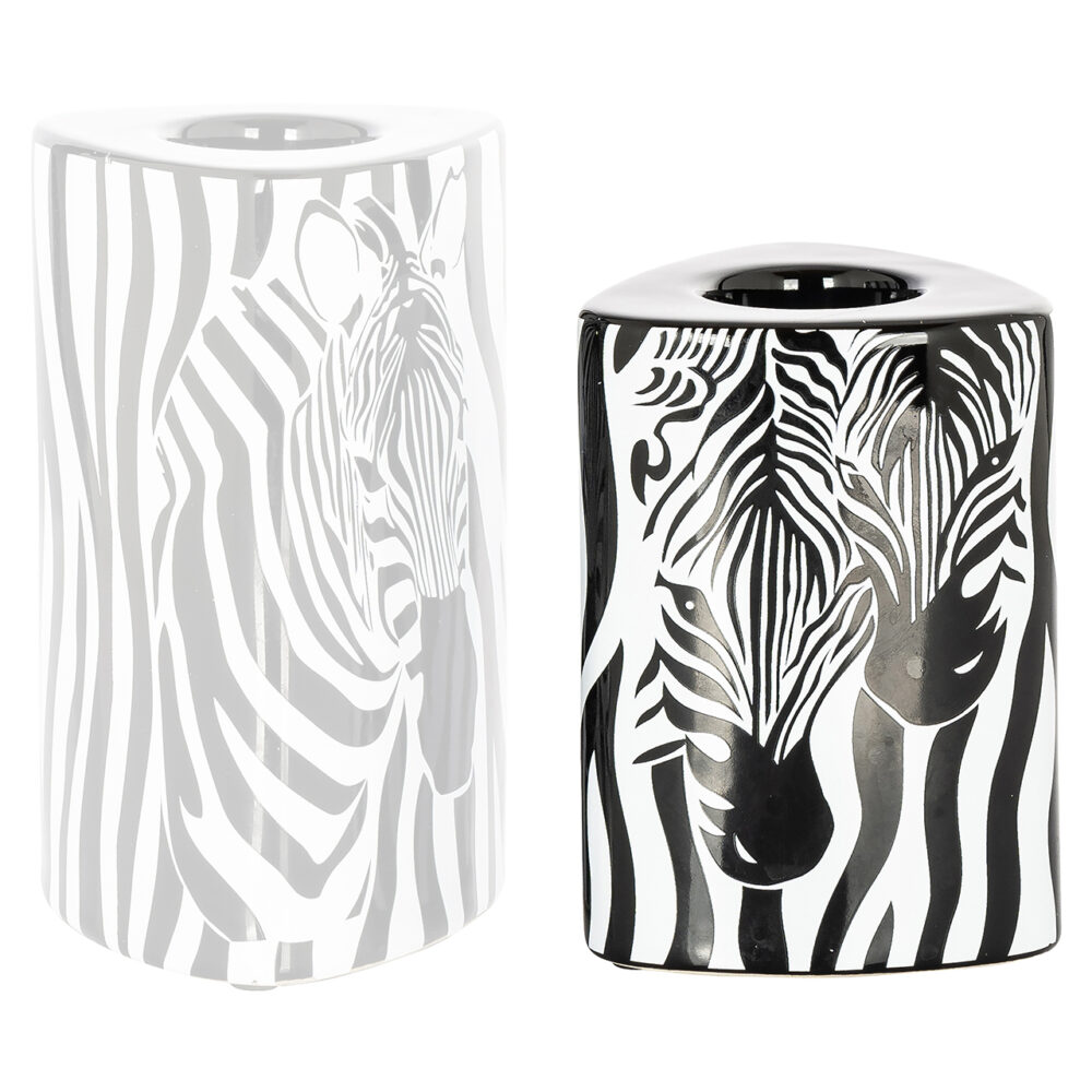 De Kandelaar Linn is een decoratief stuk met sierlijke zebrafiguren die een speelse en exotische sfeer aan elke ruimte geven, aangeboden in zowel een kleine als een grote variant voor diverse decorstijlen.